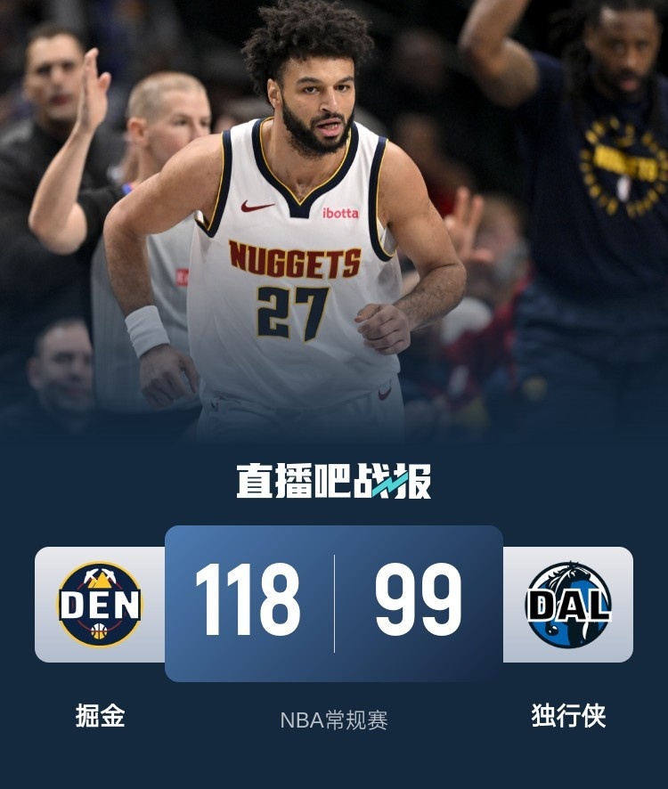 穆雷45+6 约基奇三双 欧文复出18中4 掘金再胜独行侠迎4连胜