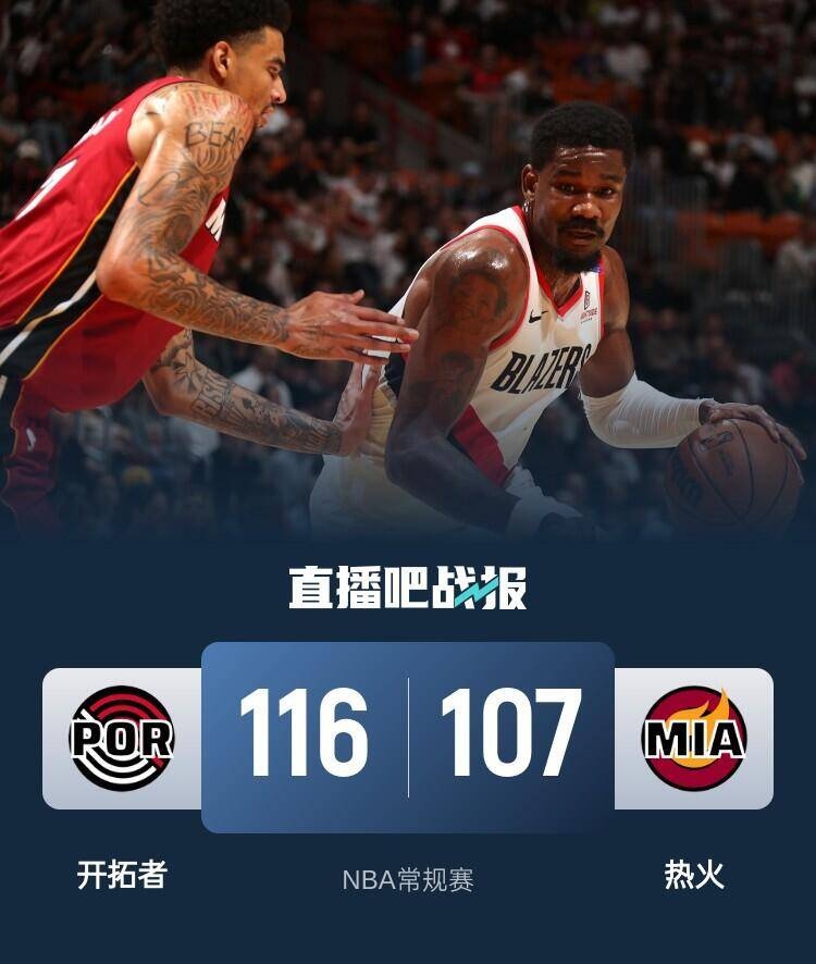 艾顿22+15 巴特勒&阿德巴约末节坐板凳 开拓者7人上双灭热火