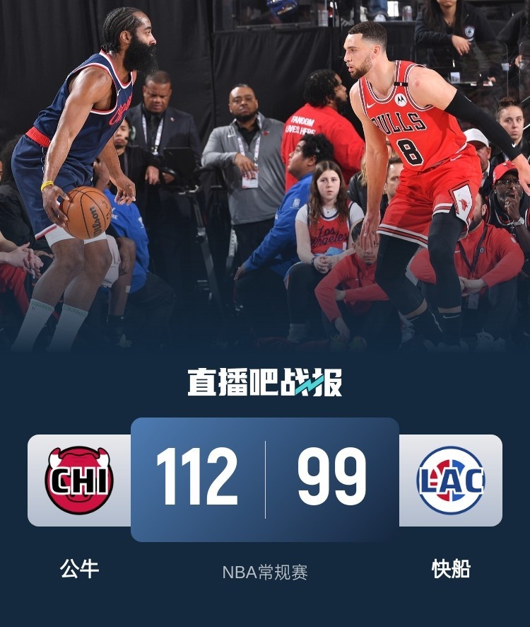 哈登17中5 拉文35分 小卡&祖巴茨缺阵 快船不敌公牛结束4连胜