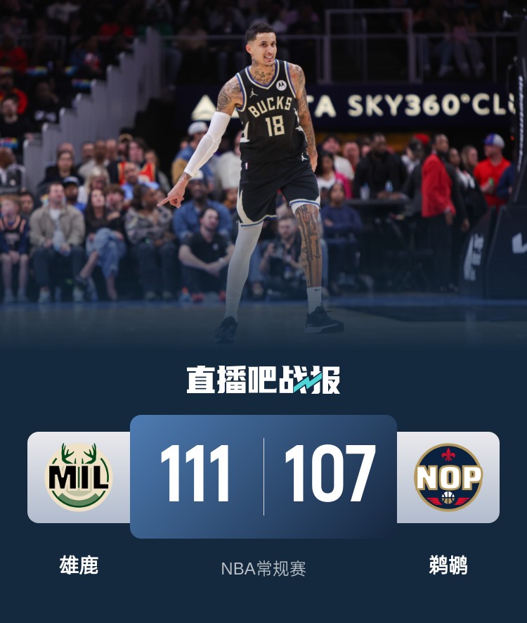 特伦特29分 大洛佩斯20+12 字&表缺战 雄鹿险胜鹈鹕迎4连胜