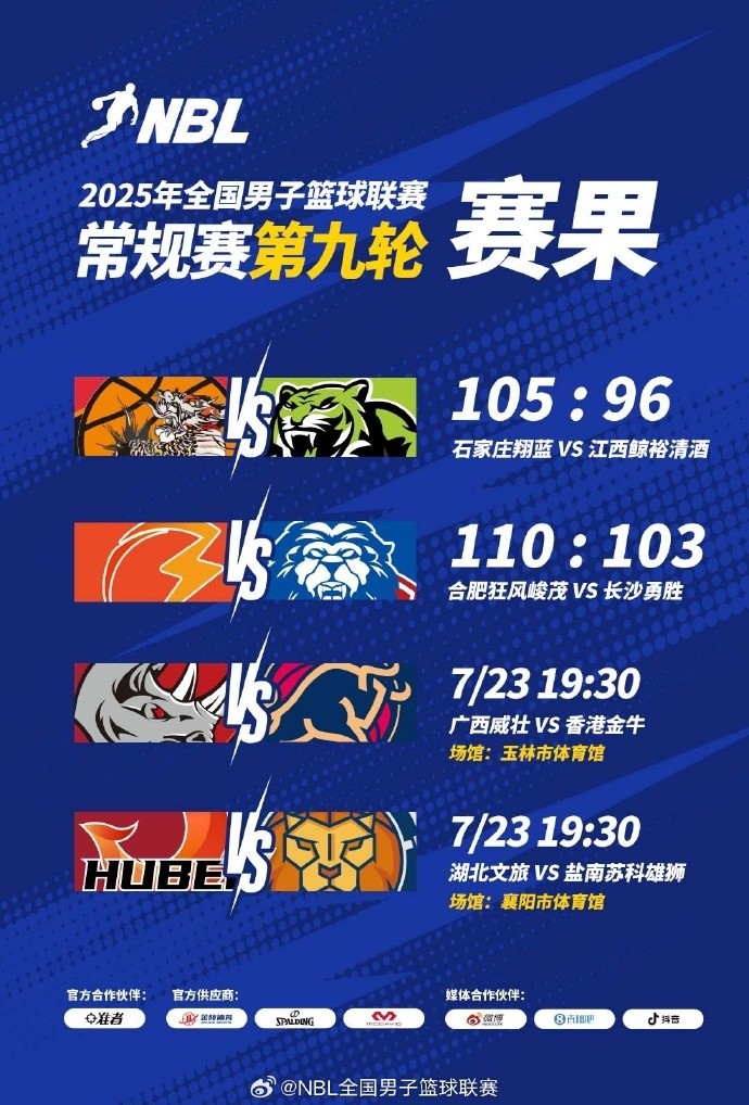 【战报】2025年NBL常规赛第九轮今天先赛两场。
