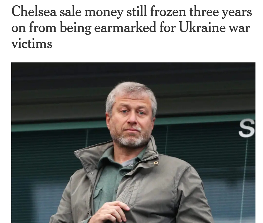 阿布在2022年因俄乌冲突被迫出售切尔西,当时英国政府宣布,只有阿布不会在交易中获利的情况下,才批准他出售切尔西。随后阿布于2022年3月2日宣布将出售的净收益捐赠给乌克兰战争中的所有受害者。但在于同年5月卖出后的近3年,这笔钱至今仍被冻结。