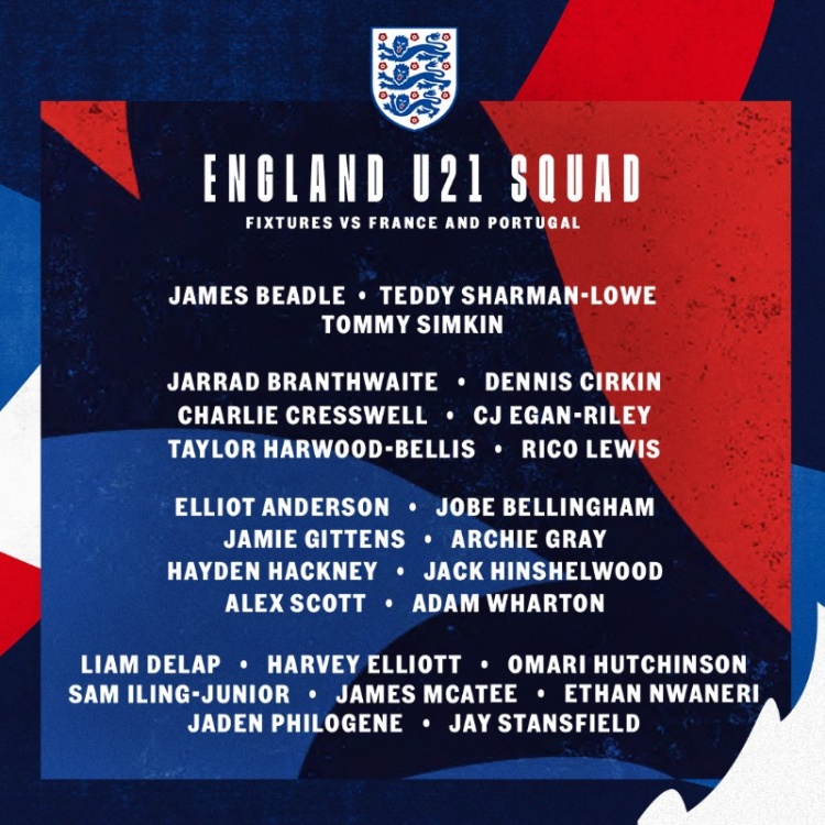 3月14日讯 英足总公布英格兰U21队大名单,里科-刘易斯、小贝林厄姆、埃利奥特、麦卡蒂、恩瓦内里在列。本月的国际比赛日,英格兰U21队将与法国U21队和葡萄牙U21队进行2场热身赛。
