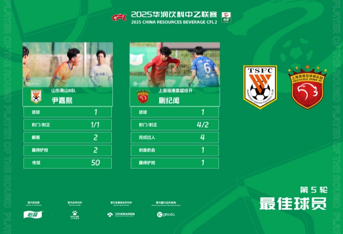 在第5轮的另一场比赛中,山东泰山B队客场1比0击败泰安天贶。比赛第87分钟,山东泰山B队从右路斜传禁区被解围,尹嘉熙得球后右脚推射破网,打入全场比赛唯一的进球。
