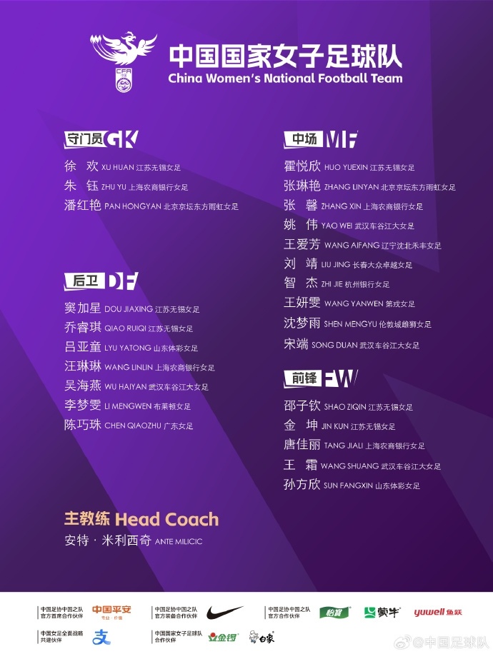 06月17日讯 足协发布官方公告,公布了7月女足东亚杯的集训名单,共25人入选。