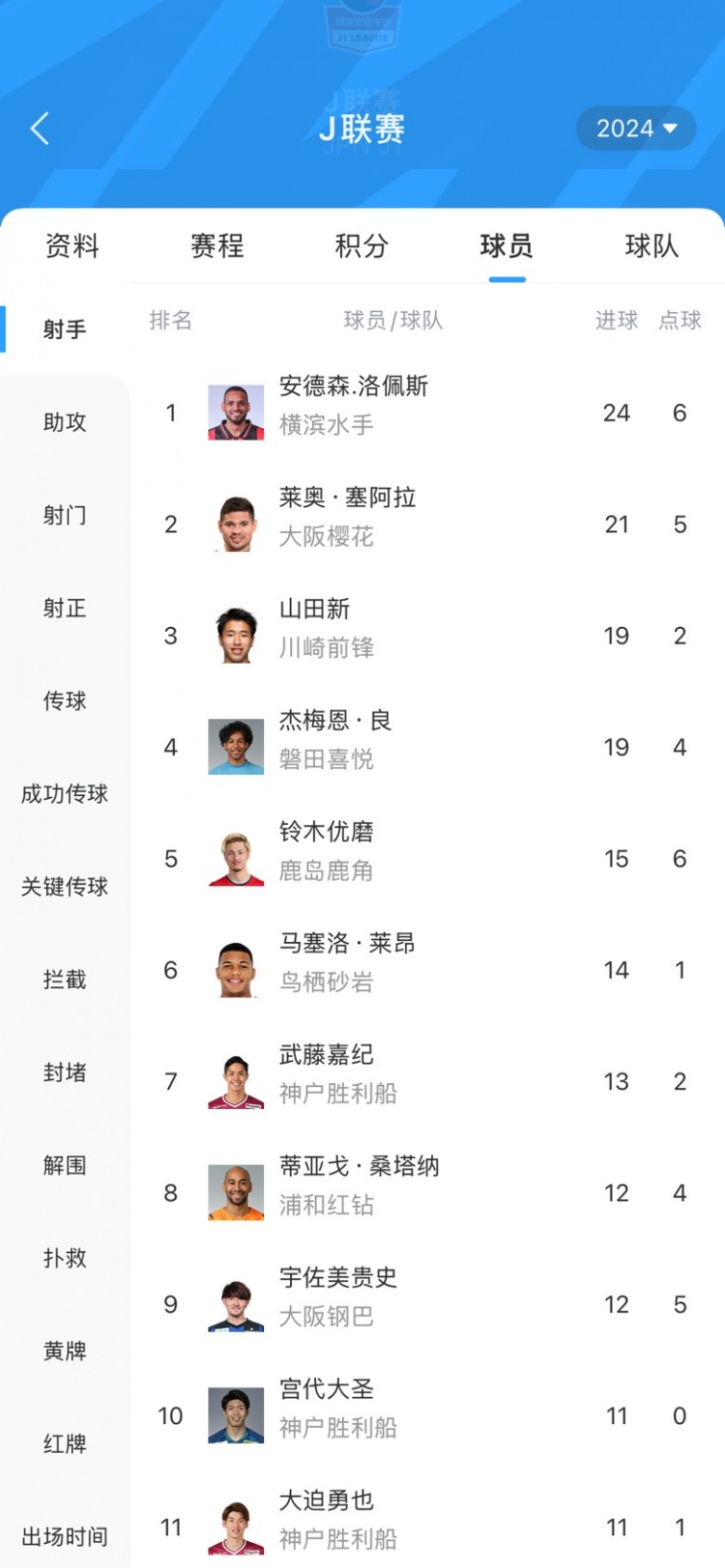 前武汉外援安德森-洛佩斯打入24球,成功卫冕J1联赛金靴