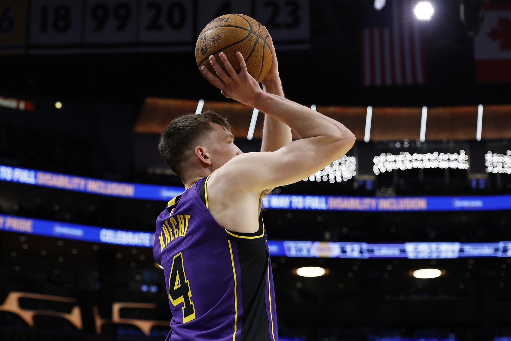 科洛克出战8分54秒,湖人实则八村塁+老詹+克里斯蒂+里夫斯+文森特+克内克特+雷迪什七人短轮换撑场面。