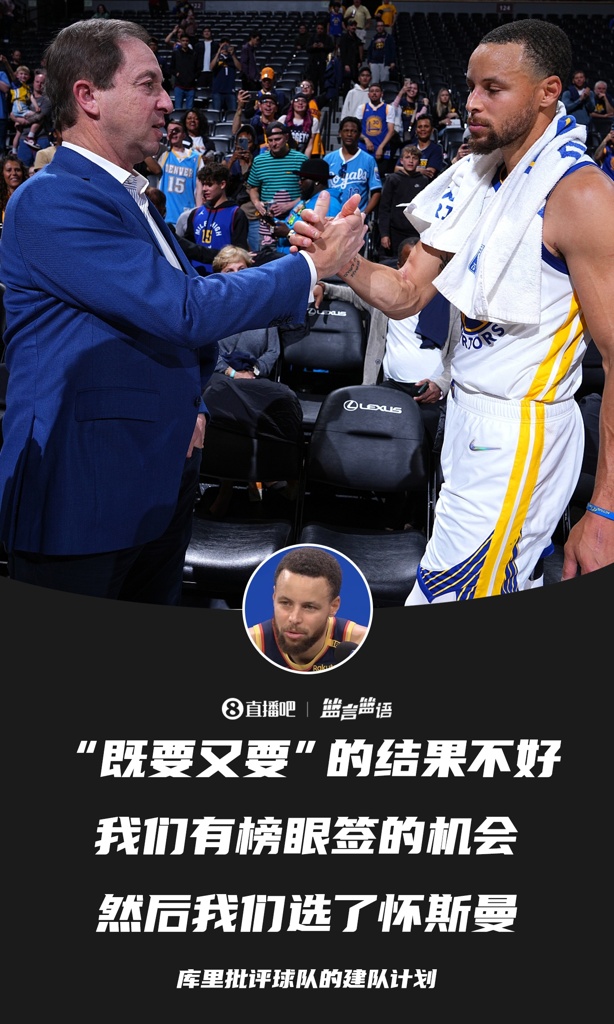 01月15日讯 上周,ESPN发布了一则长文,分享勇士故事,内容中,库里批评球队管理层“既要又要”的话语引发了热议——“我认为双线计划的结果并不算好。”库里说,“我们选了怀斯曼,他的情况很挣扎,这不是他的错,但我们当时手握2号签,我们当时有机会,然后我们选了怀斯曼,我们认为那是一个衔接两代桥梁的办法,但没有奏效。”