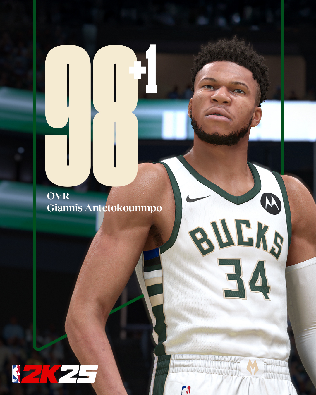 2K能力值调整:字母哥+1来到98与约基奇并列第一 詹姆斯-1变成95