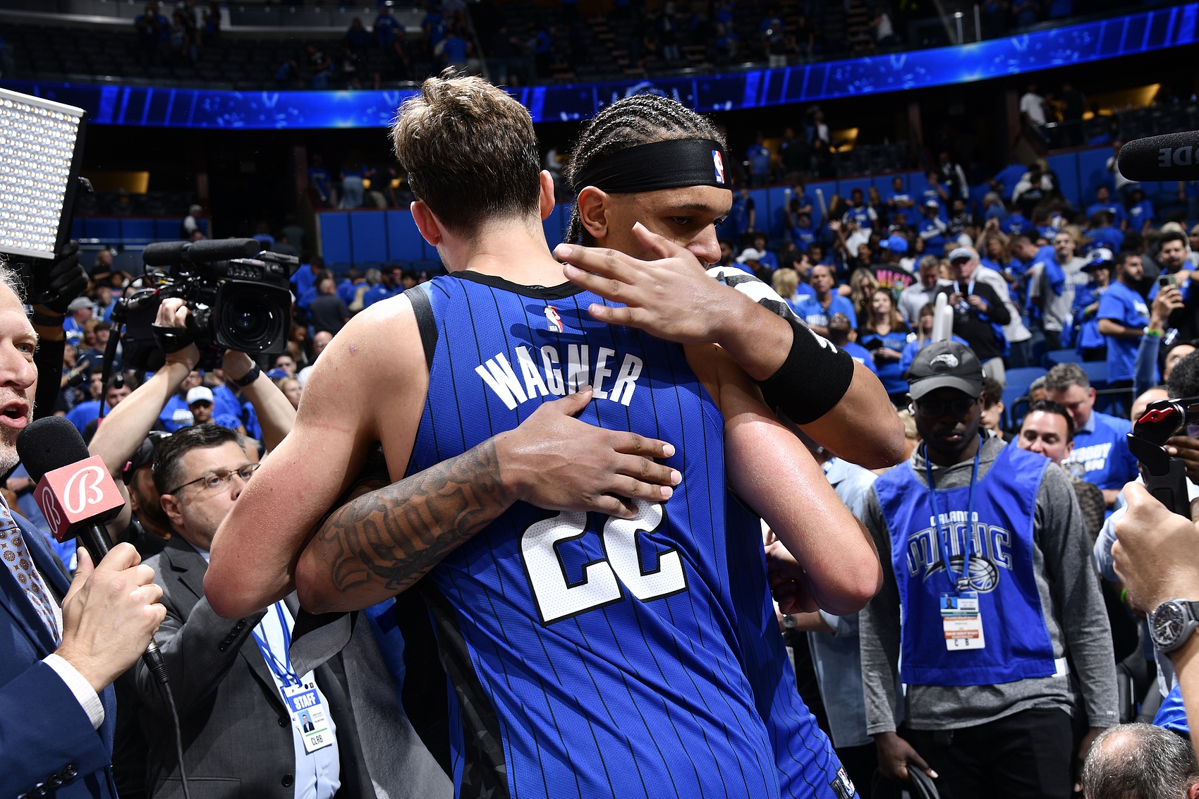 值得一提的是,小瓦格纳和他的队友——班凯罗遭受的是同样的伤病!11月1日,Shams和魔术官方先后透露,班凯罗遭遇右斜肌撕裂,四至六周后重新评估,目前还未复出。