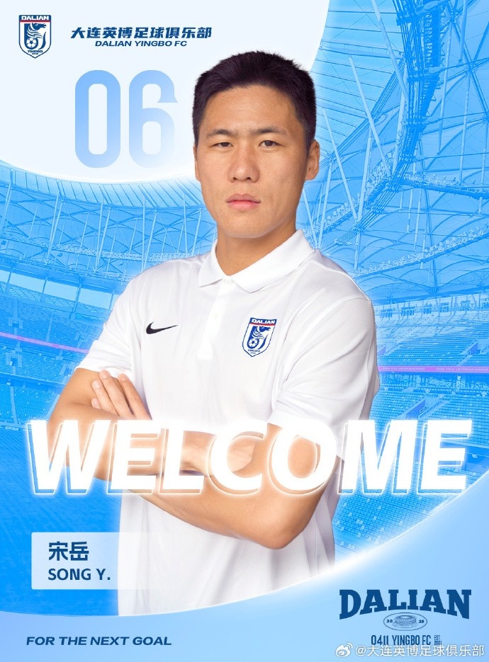 在2025赛季,宋岳正式签约加入大连英博足球俱乐部,我们期待他能利用自己的经验,在中后场为球队贡献强有力的支持。