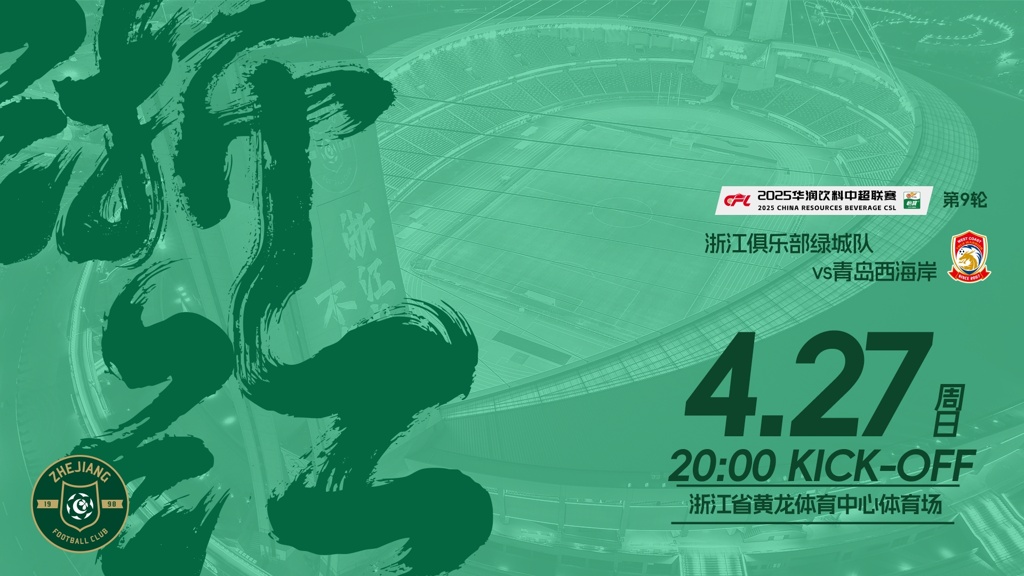 04月27日讯 北京时间20点,中超第9轮,浙江vs青岛西海岸,赛前双方首发公布。