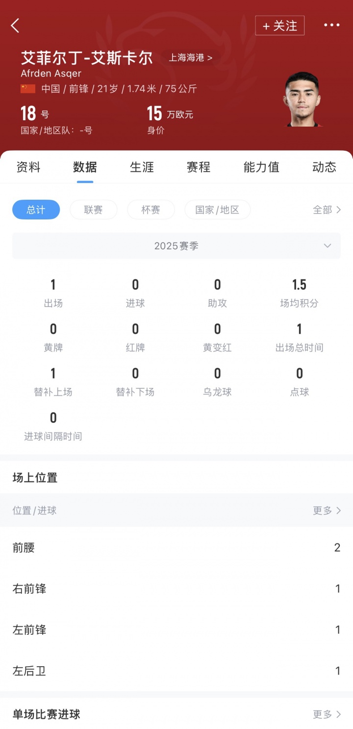 艾菲尔丁成名多年,但近些年来一直为获得稳定的出场机会而奋斗。2025赛季开始以来,艾菲尔丁只获得过1次出场机会。如今他来亚泰后,可以增加亚泰边路突击的能力。此前,有消息称艾菲尔丁将加盟亚泰的保级直接竞争对手青岛海牛。